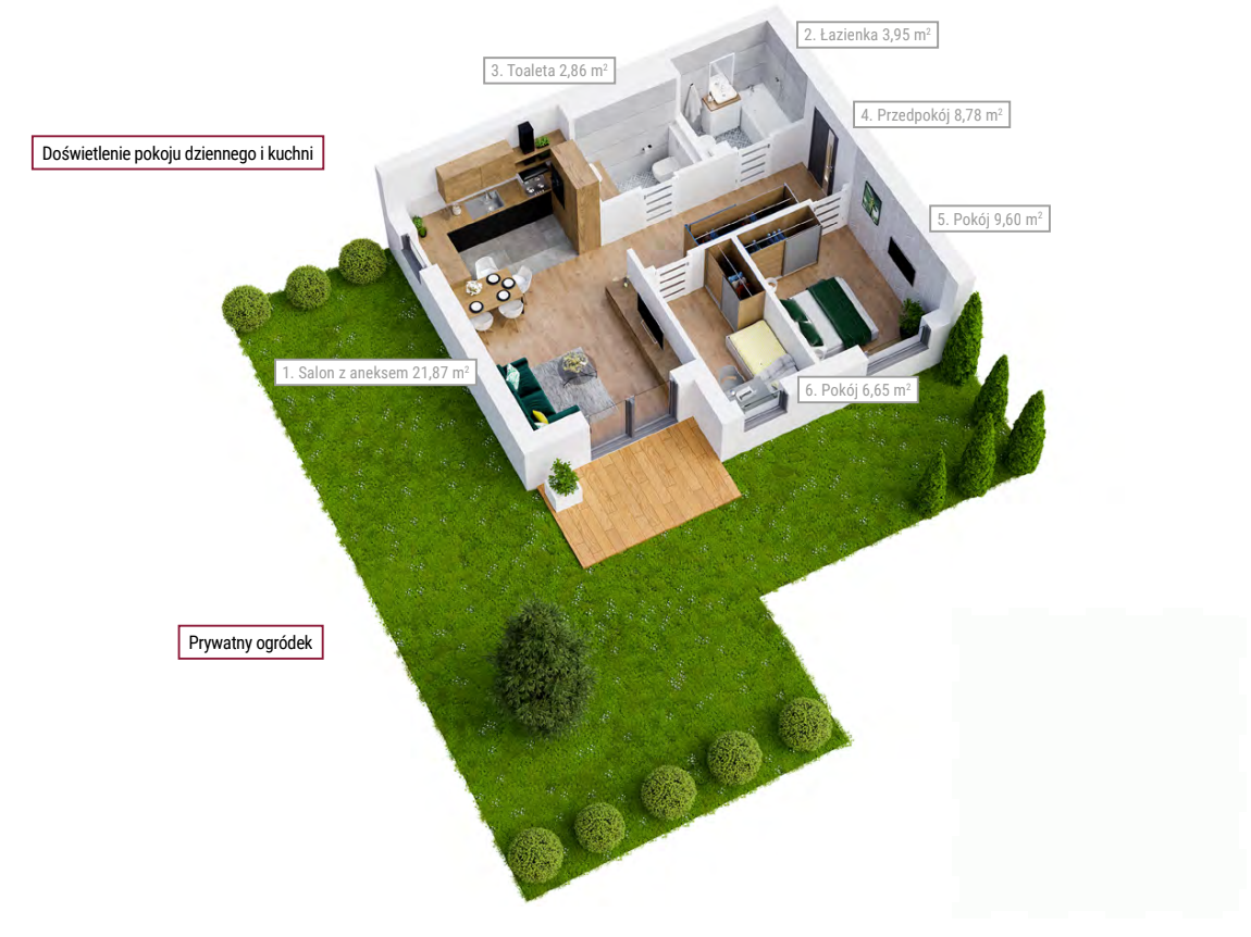 Zawartość strony ma charakter informacyjny i nie stanowi oferty handlowej w rozumieniu Art. 66 § 1 Kodeksu Cywilnego. Udostępniane materiały i wizualizacje mają charakter poglądowy – wygląd budynku oraz zagospodarowanie terenu może nieznacznie ulec zmianie na etapie realizacji inwestycji.