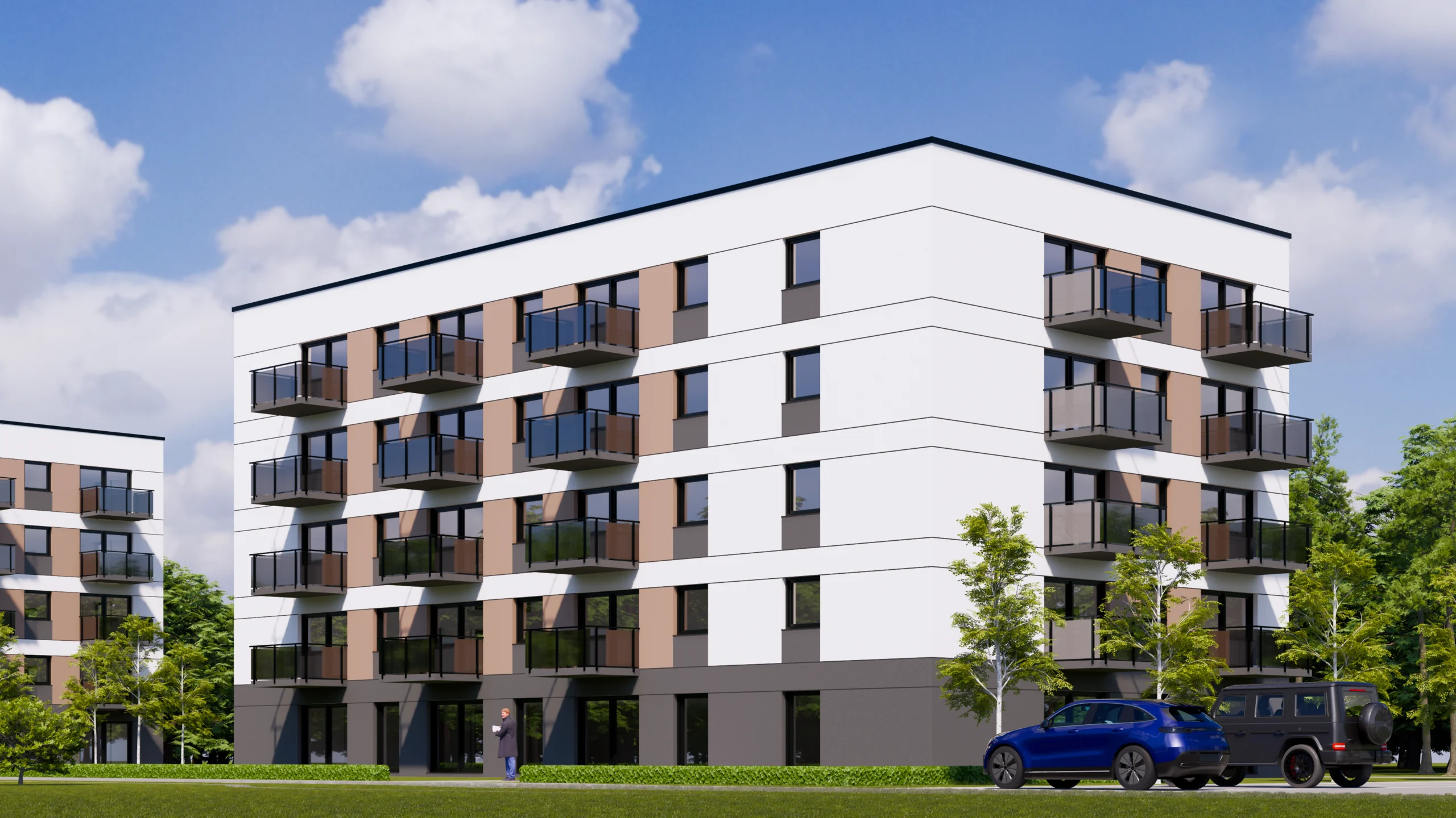 Składa się z trzech eleganckich budynków, w których zaprojektowano po 40 przytulnych mieszkań o powierzchni 30 m², 45 m² oraz 55 m² – idealnych zarówno dla singli, jak i rodzin. To nowoczesne przestrzenie, które dostosujesz do swojego stylu życia.